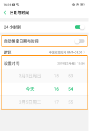 2、开启自动确定日期与时间后,系统将自动定位您当前所在的时区,关闭自动确定日期与时间,即可出现设置时间的选项,自行进行设置即可。