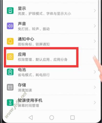 2、在设置的页面下拉找到并点击进入【应用】,