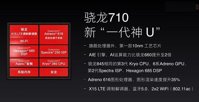 众所周知,决定一款手机跑分性能的核心硬件主要是处理器,骁龙710作为高通去年经典神U,如今依然有着很高的热度,下面首先回顾下,高通骁龙710参数规格一览: