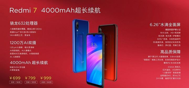 红米7配置参数价格及上市时间介绍: