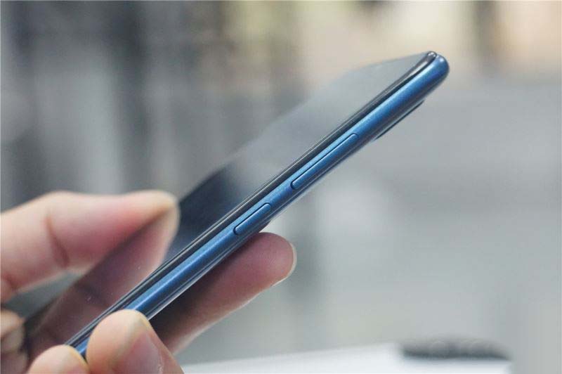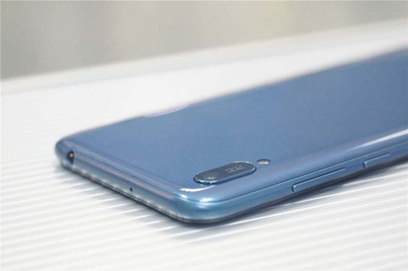 华为畅享9e共有幻夜黑、宝石蓝、琥珀棕三种配色方案,本次我们拿到的是宝石蓝配色,据说其将直径仅15微米的反光粒子喷涂在机身上,当强烈光线照射到反光粒子时能够让光线产生衍射,形成七彩宝石般的幻光效果。真机体验,确实有一种油光溢彩的效果。
