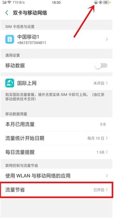 注意事项:开启流量节省后,后台应用将不能使用移动数据;前台的应用将自己决定是否采取省流模式,如降低图片分辨率等等。注意,开启省流模式将不能开启网络共享功能!状态栏会出现节省流量的图标。