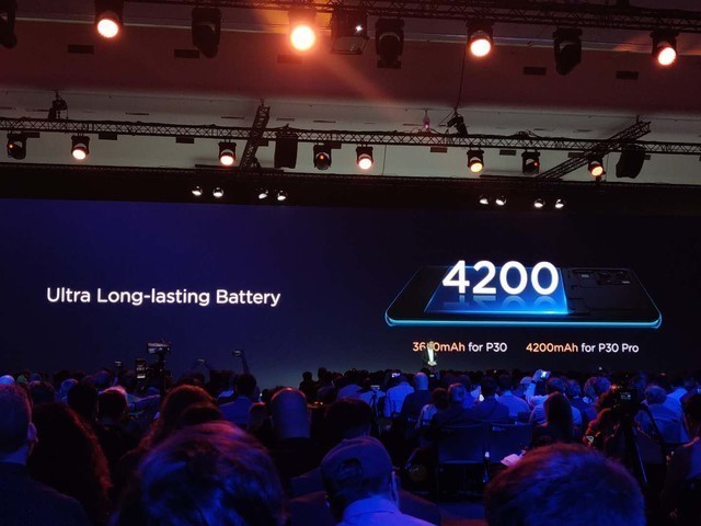 尺寸不一样的两款新品,续航的配置上也有着差别,华为P30 Pro搭载了4200mAh的大电池,配备了40W的超级快充,半小时大约可充电70%,并支持15W无线快充,亦可无线反向充电,可给支持无线充电的设备充电。
