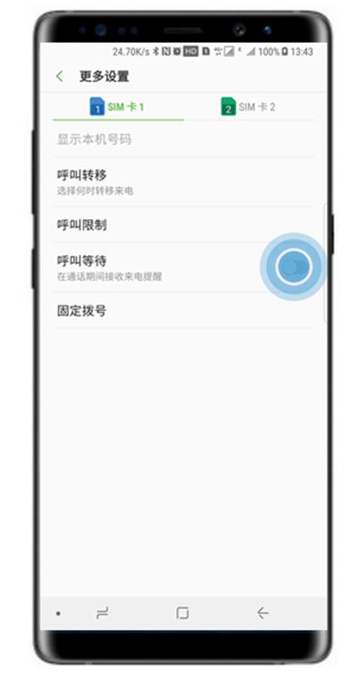 选择要设置呼叫等待的SIM卡,这里以选择【SIM卡1】为例。