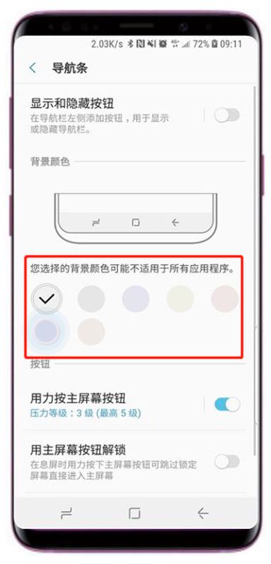 三星a70修改导航栏颜色步骤