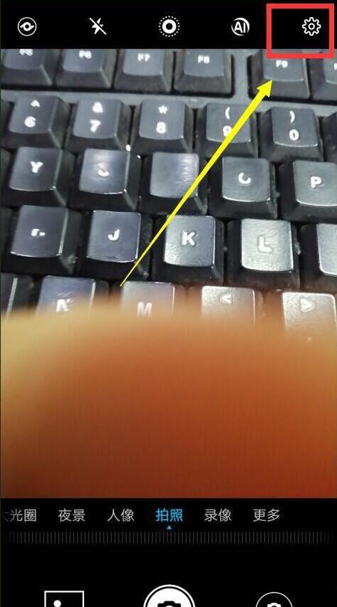2、点击右下角拍摄键旁边的图标切换后置摄像头后,点击右上角的设置图标。