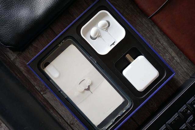 下层看到的就是X23的所有配件了,相对很多品牌来说,vivo的配件数量及实用性上面良心很多,除了提供传统的”老四样”(手机套、充电线、耳机、电脑适配器)以外,手机本体上面正反二面也已经贴了膜。