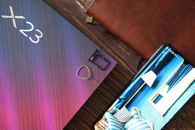上层摆放的是x23手机本体,右侧有X23幻彩版字样。从下面这张图大概可以看出,X23的相比楼主短暂用过的X21变化还是比较大,一方面是额头从刘海变成了水滴,另一方面屏占比也有较大幅度提升,从NEX S开始启用的屏下指纹也出现在了X23上面,当然出现在X23上面的已经属于第四代的屏幕指纹指术,实际开锁速度相比NEX S确实有一定幅度提升。