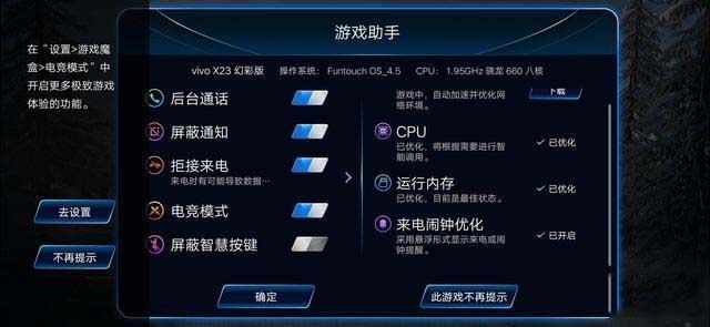 游戏助手功能,能够在游戏过程中对手机的后台过行设置,并且能够对系统进行优化,关闭一些不需要的应用,来提高游戏体验。
