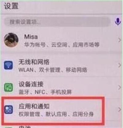 进入设置页面后,找到并点击【应用和通知】,
