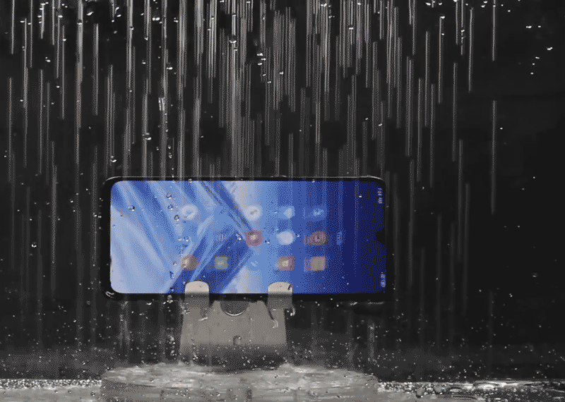使用淋浴喷头对小米9进行模拟“淋雨”测试。为了以示公平,在这个测试中会依次将SIM卡槽和手机底部扬声器、数据口,朝向上方喷头,提高手机进水概率。结果小米9的各项功能依然正常。