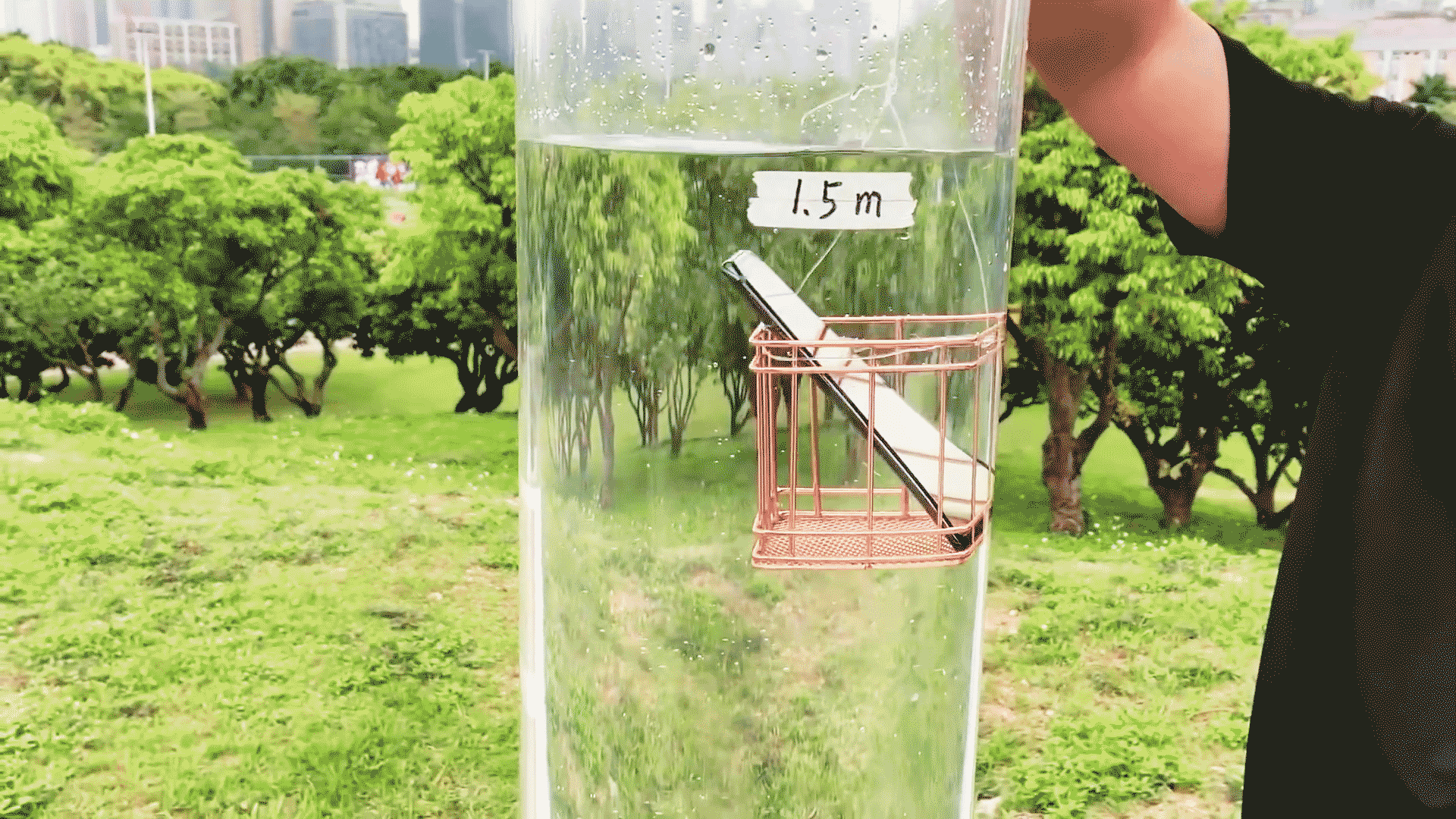 小米9所谓的生活级防水效果已经大大超出了我们的预期,那么如果用IP68级防水测试标准测试小米9,结果究竟如何?威特将小米9放入水深为1.5米的透明水桶中,持续30分钟。