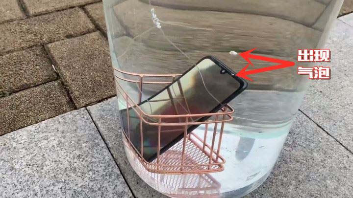 测试难度进一步加大。在水池中灌满水,放置一个手机架,把小米搁在手机架上进行浸泡测试,时间持续一分钟。撩出小米9后,测试各项功能正常。