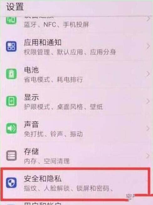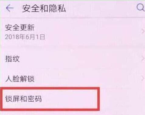 3.在安全与隐私的界面,点击【锁屏和密码】,