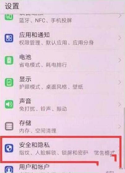 2、在设置页面点击进入【安全和隐私】,