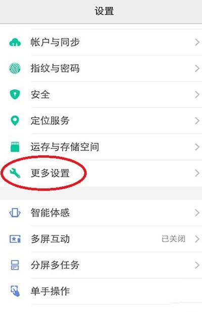 1、打开手机设置,滑动页面,找到并点击【更多设置】如图所示