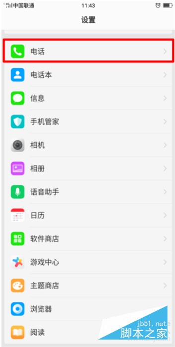 在设置里面找到并点击【电话】选项。