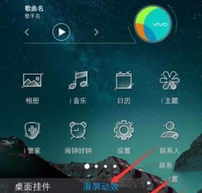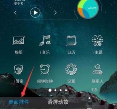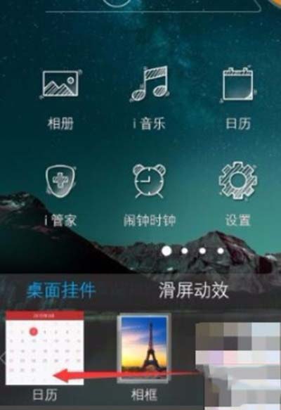 3、在弹出桌面挂件窗口中包含桌面挂件、滑屏动效和隐藏图标三项,其中桌面挂件就是添加各种挂件到桌面上显示,滑屏动效就是滑动桌面滑动的效果设置,隐藏图标一项不常用不做解释,如图。