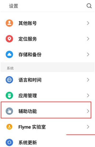 2、在设置界面下拉,找到【辅助功能】选项,点击打开。