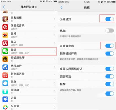 方法二、另外,还可以设置单个应用的锁屏通知,在【状态栏与通知】界面选择需要设置的程序,比如进入微信关闭允许通知和在锁屏显示开关。