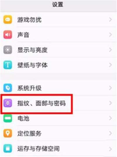 2、进入设置选项之后,找到【指纹、面部与密码】选项,点击进入。
