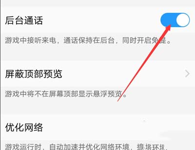 4、打开后,下方的功能都可以被设置,先来看下后台通话功能,也就是打电话来直接以后台模式运行,不会打扰自己,且有免提,点击开启。