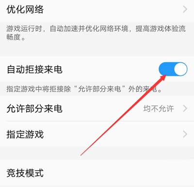 5、自动绝接来电,这个是真正的勿扰了,连电话都无法接入,专心玩游戏,当然下方会有白名单设置,允许部分来电以及指定游戏。