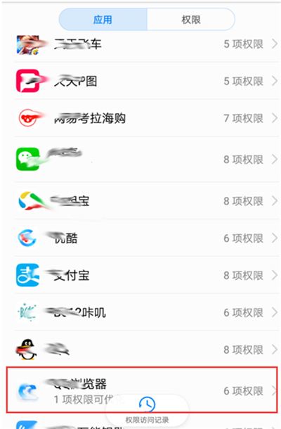 4.进入权限管理页面,选择我们要设置权限的应用,比如【浏览器】,点击进入。