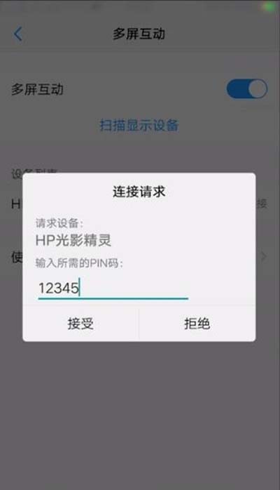 3、自动扫描设备,输入“PIN码”点击“接受”,等待连接成功即可
