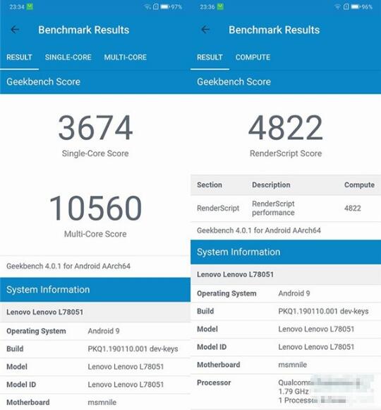 通过对联想Z6 Pro的性能进行安兔兔跑分以及Geekbench4的测试,安兔兔跑分得分为353310,Geekbench4单核得分3674,多核得分10560,运算能力得分4822。