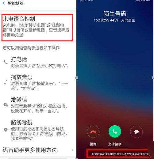 在驾驶过程中,来电会有语音播报,你也可以语音控制“接听”还是挂断。重点是,你还可以语音控制拨打电话!而且接通之后还会自动免提。