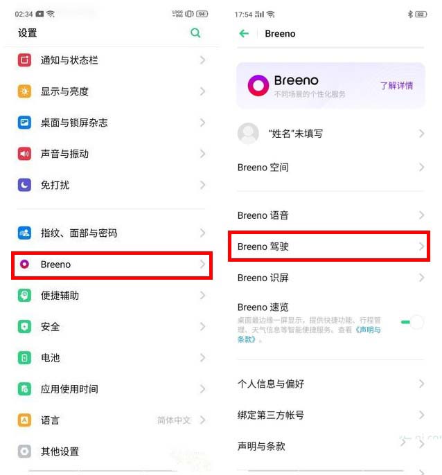 首先需要开启智能驾驶,开启方式:打开手机桌面的【设置】选择【breeno】进入【智能驾驶】