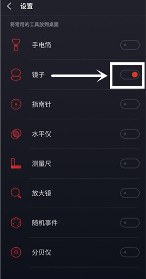 2.打开手机【工具箱】应用,在应用界面点击【镜子】选项即可打开手机镜子功能。