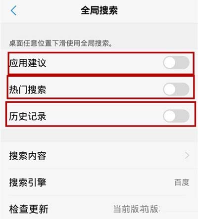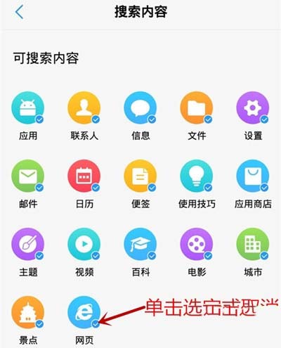 4.您也可以点击“搜索内容”设置vivoz1全局搜索的内容,这样可以在使用全局搜索的时候得到更加精准、更加符合您口味的内容。