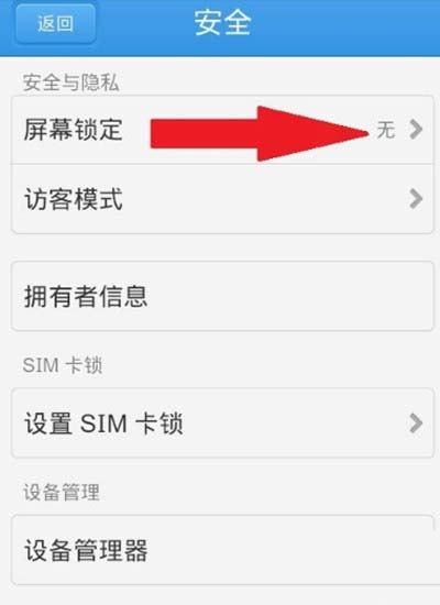 4、如图所示,单击【屏幕锁定】,然后界面显示【无】。