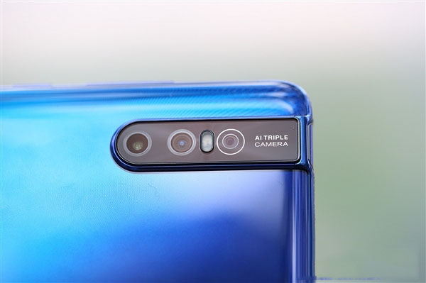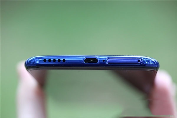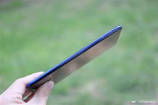 该机提供钟情蓝、珊瑚红两种配色,我们拿到的是钟情蓝版本,在蓝色底部又添加翎羽的纹理光泽设计,粼粼微光下,非常吸睛。
