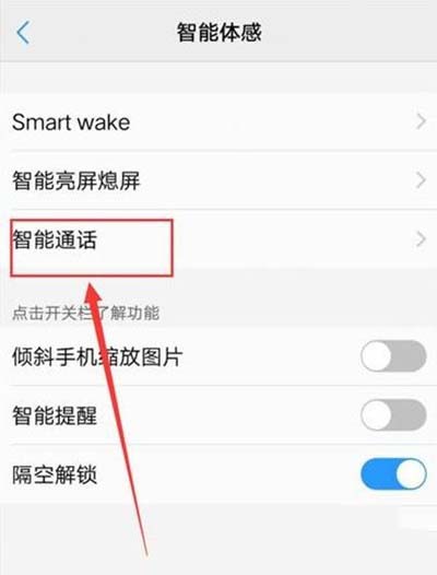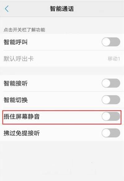 3、进入【智能通话】之后,找到【捂住屏幕静音】、