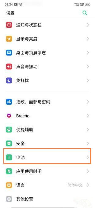 1、找到手机中的“设置”按钮,然后在设置菜单中选中“电池”,点击打开。