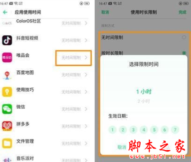 在【应用守护】中,我们除了可以查看到被守护人每天使用了什么软件,使用了多长时间,还可以为被守护人设置应用时长限制,设置流程如下图所示: