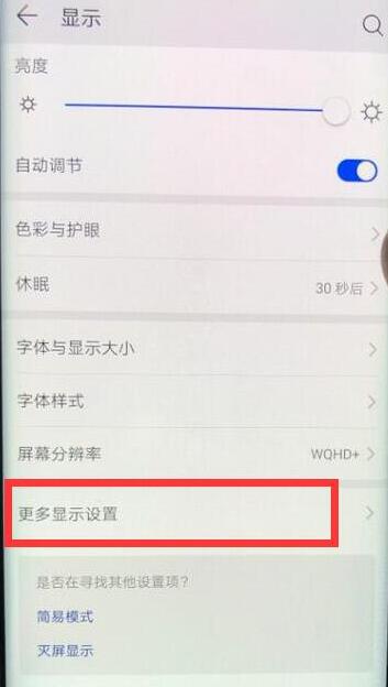 3、在显示页面点击打开【更多显示设置】-【屏幕顶部显示】,