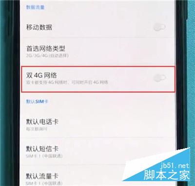 3、找到【双4G网络】选项,点击打开该选项即可同时开启4G网络。