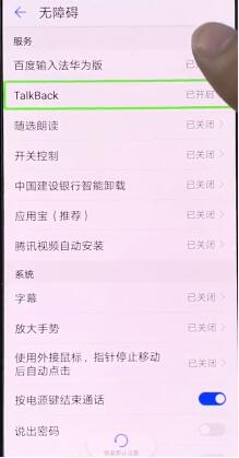 4、点击打开Talk Back,