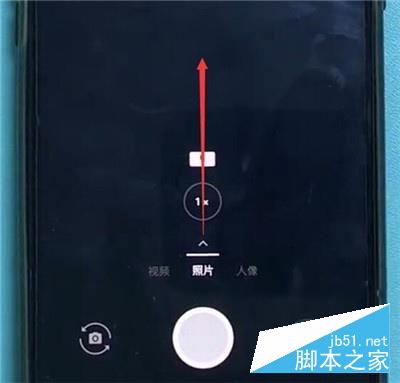 2、进入拍照界面之后,从箭头标志的位置向上滑动,直到出来更多功能选项。