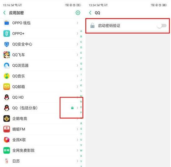 2、首次进入应用加密需要设置基础隐私密码,设置完成后即可进入查看所有支持加密应用。然后选择要加密的应用打开或关闭“启动密码验证”。
