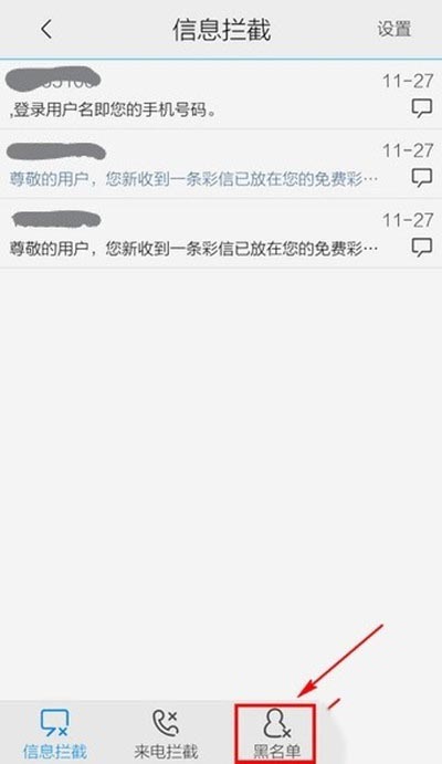 第三步:选择底部的【黑名单】。