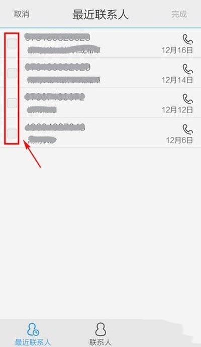 第五步:系统会自动调取通话记录里的陌生号码,选择其中的点击右上角的【完成】即可