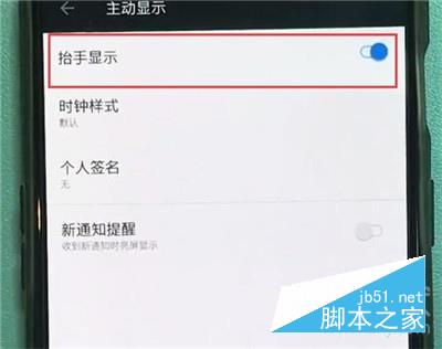 4、接着打开【抬手显示】右边的开关,将它打开即可。