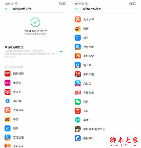 双通道网络加速:同时开启无线网络与移动网络,系统智能整合网络传输回来的数据包,帮助应用提升数据加载速度,大量文字及图片的新闻类应用提升显著。(温馨提示:开启后,会使用您的数据流量,产生资费。)