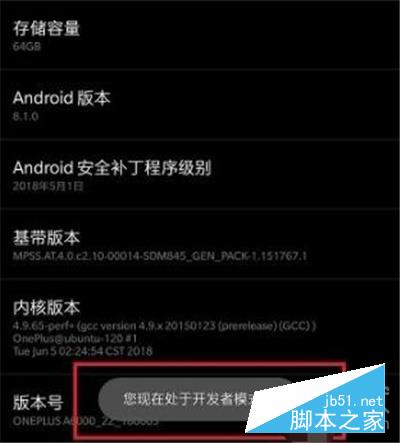 3、接着找到【版本号】,连续点击7次,直到出现“你现在处于开发者模式”为止。