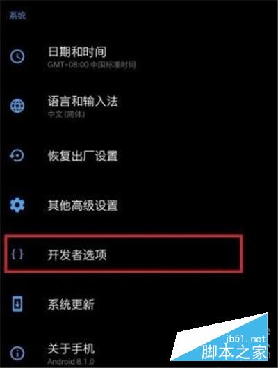 4、返回上一级系统设置界面,找到【开发者选项】,点击打开。